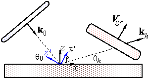 Иллюстрация необычного эффекта отличия направлений фазовой и групповой скоростей отраженного импульса в вакууме случае несимметричной дифракции.